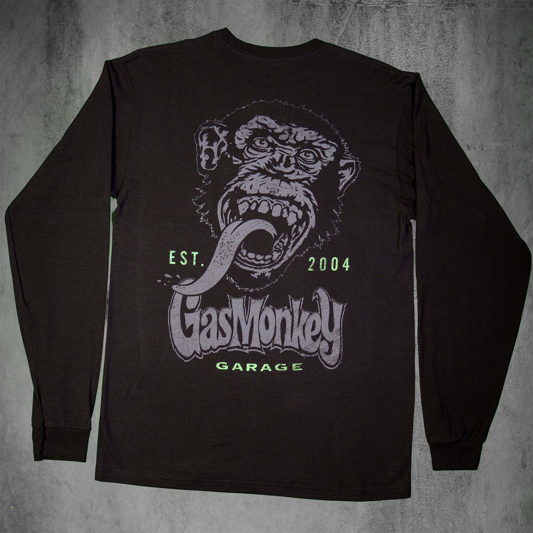 The Gas Monkey Garage Classic Monkey Long Sleeve Tee brings the same raw energy and attitude as the original, now with a little extra coverage. Hand selected by Richard Rawlings, this long sleeve tee is built from premium 100 percent cotton that is strong enough for the garage and soft enough for all-day comfort.